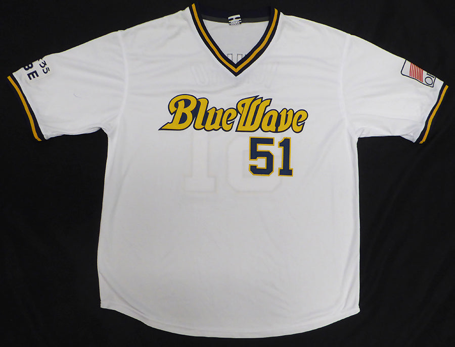 - Authentic White Kooy Orix Blue Wave Jersey hand signed by Ichiro Suzuki