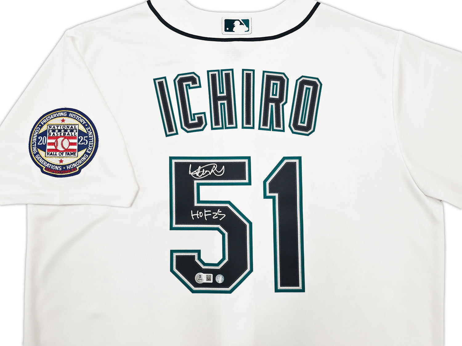 Seattle Mariners Ichiro Suzuki Autographed White Nike Jersey Size L "HOF 25" IS Holo & Beckett BAS Witness Stock #254345