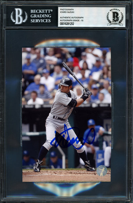 Ichiro Suzuki Autographed 4x6 Photo Seattle Mariners Auto Grade Gem Mint 10 Beckett BAS #18281220