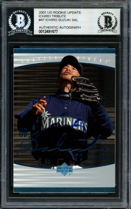 Ichiro Suzuki Autographed 2001 Donruss Rookie Card #R104 Seattle Mariners Beckett BAS Stock #182320