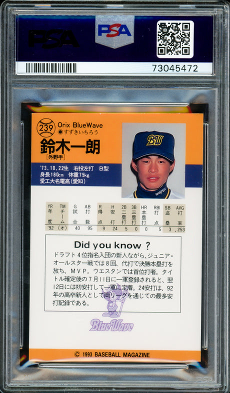 Ichiro Suzuki Autographed Official Stat Logo Baseball Seattle Mariners #8/200 IS Holo SKU #237297
