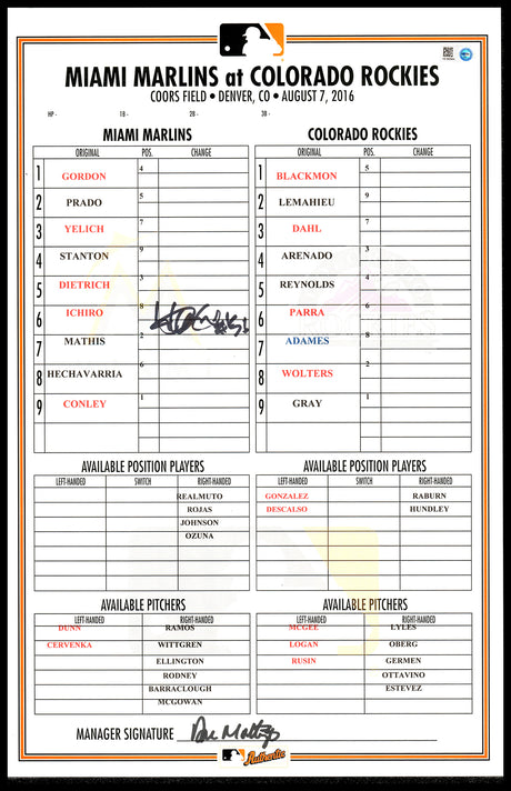 Miami Marlins Ichiro Suzuki Autographed Orange Majestic Flex Base Jersey IS Holo SKU #237034