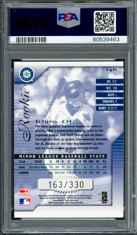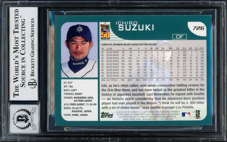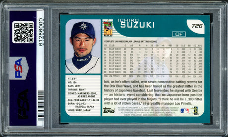 Ichiro Suzuki Autographed 2001 Topps Rookie Card #726 Seattle Mariners PSA 9 PSA/DNA Stock #220861