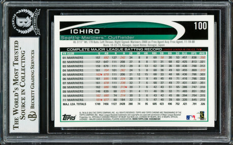 Ichiro Suzuki Autographed 2012 Topps Chrome Card #100 Seattle Mariners Beckett BAS Stock #220275