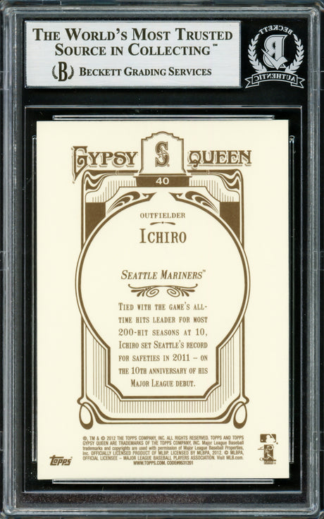 Ichiro Suzuki Autographed 2012 Topps Gypsy Queen Card #40 Seattle Mariners Beckett BAS Stock #220277