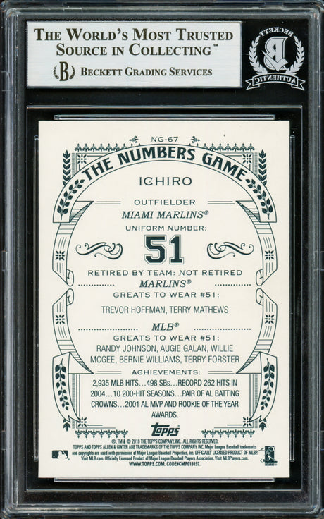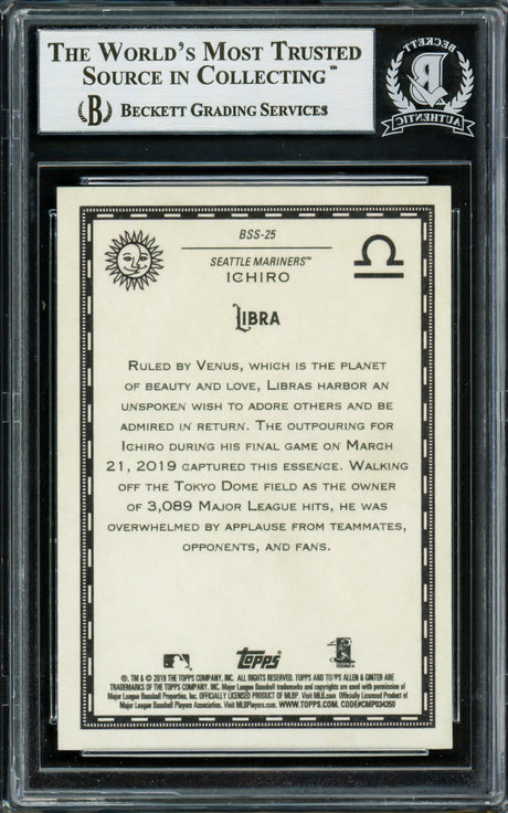 Ichiro Suzuki Autographed 2010 Topps Card #199 Seattle Mariners Beckett BAS Stock #228046