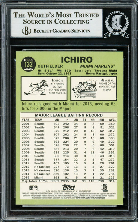 Ichiro Suzuki Autographed 2016 Topps Heritage Card #132 Seattle Mariners Beckett BAS Stock #220281