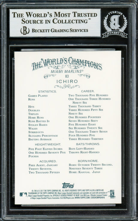 Ichiro Suzuki Autographed 2011 Bowman's Best Card #BB7 Seattle Mariners Beckett BAS Stock #220273