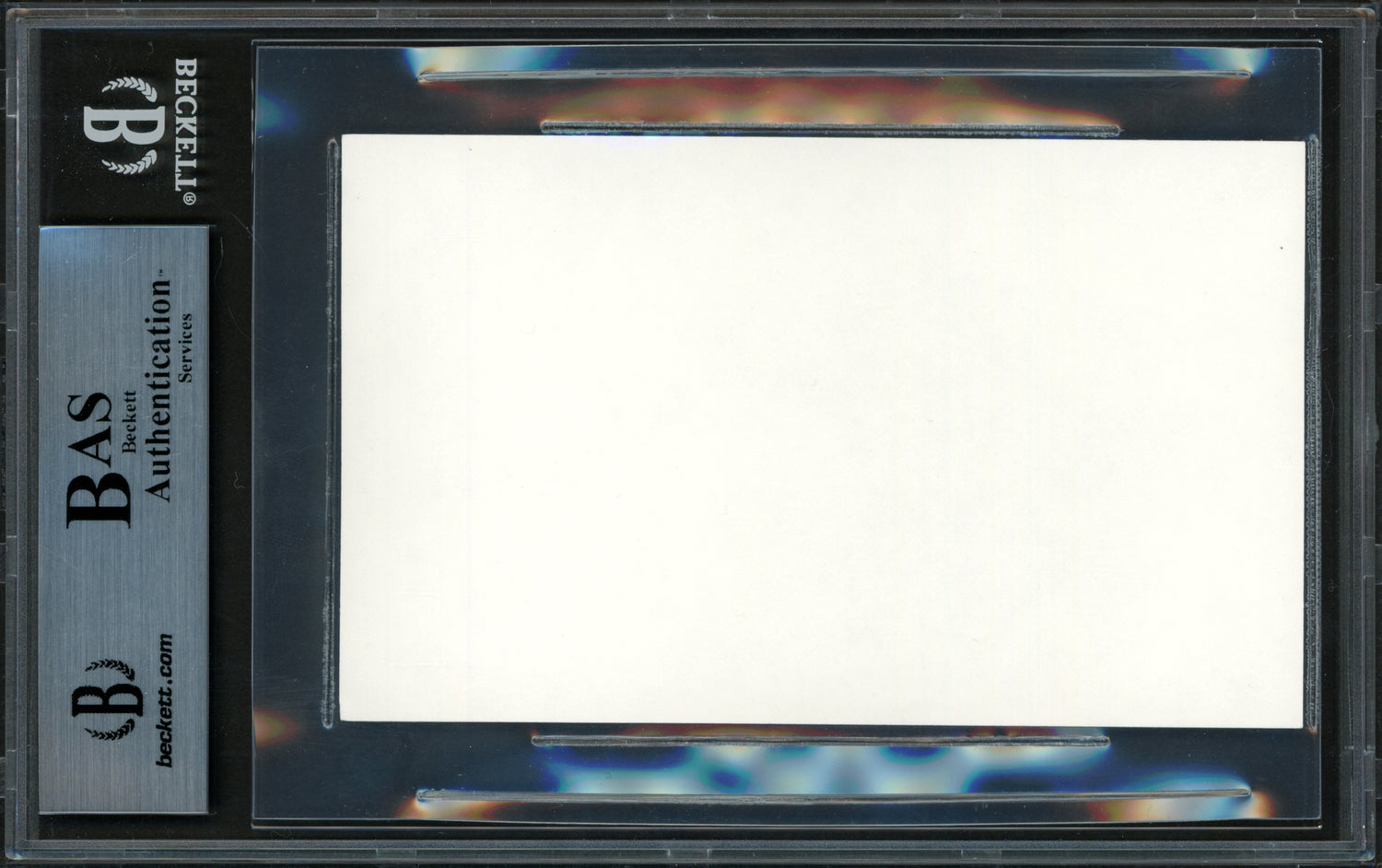This autograph has been certified authentic by Beckett Authentication Services (BAS) and is encapsulated in their tamper-proof holder for long-term preservation and display. A must-have for serious collectors and football fans alike, this piece is a tribute to Unitas' enduring legacy.