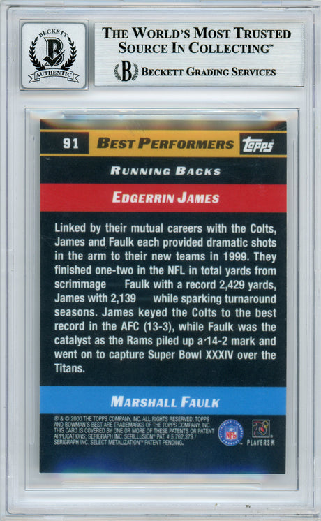2000 Bowman's Best - Best Performers #91 Marshall Faulk Colts BGS Auto 10