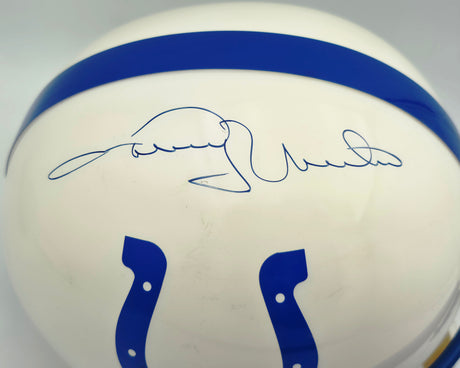The Indianapolis Colts carry one of the richest legacies in professional football, stretching from their founding in Baltimore in 1953 through their move to Indianapolis in 1984 and beyond. With two Super Bowl championships — Super Bowl V as the Baltimore Colts and Super Bowl XLI led by Peyton Manning in Indianapolis — the franchise has produced some of the greatest players the game has ever seen. Johnny Unitas rewrote the quarterback position in Baltimore, and Manning carried that tradition forward at Lucas Oil Stadium alongside playmakers like Marvin Harrison, Reggie Wayne, and Edgerrin James. Browse our full collection of authenticated Colts memorabilia, including signed helmets, trading cards, autographed photos, and signed jerseys.