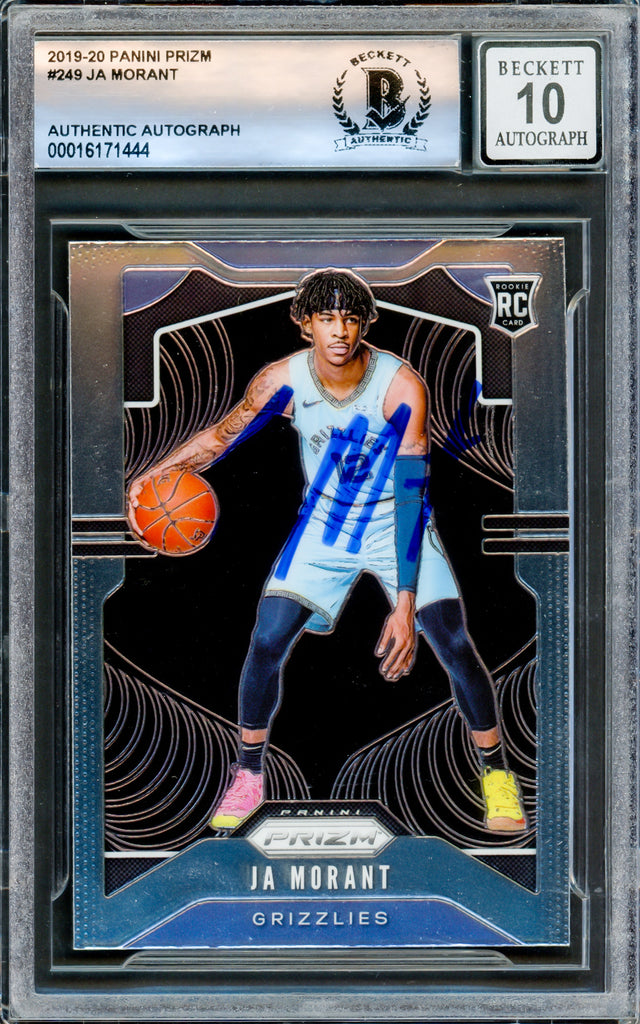 Ja Morant Autographed 2019-20 Panini Prizm Rookie Card #249 Memphis Grizzlies Auto Grade Gem Mint 10 Beckett BAS Stock #220782