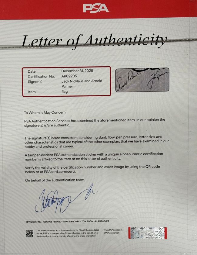 - An incredibly rare dual-signed collectible that honors the historic partnership and competition between Palmer and Nicklaus during the prime of PGA Tour history.