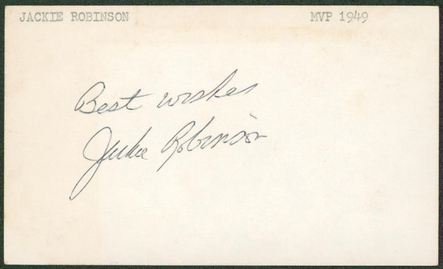 Dodgers Jackie Robinson Best Wishes Authentic Signed 3x5 Index Card JSA #XX48287 is backordered and will ship as soon as it is back in stock.