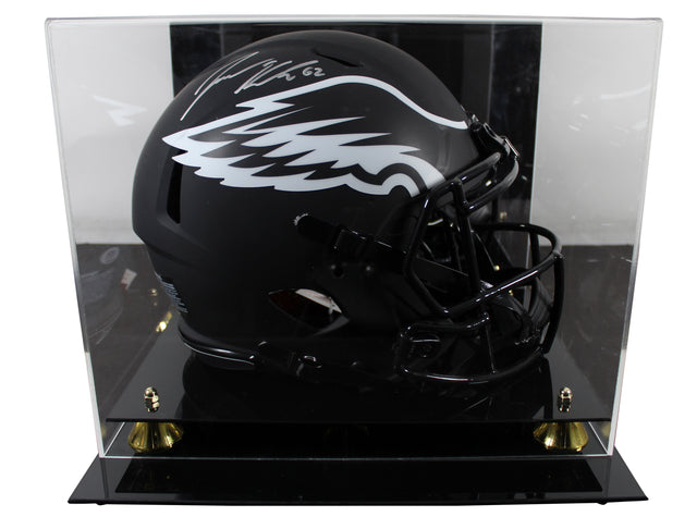 Own a piece of Philadelphia Eagles history with this Jason Kelce Autographed Alternate Eclipse Riddell Full-Size Speed Proline Helmet, complete with a UV Mirrored Back Acrylic Display Case. This stunning helmet is personally signed by Jason Kelce, one of the most beloved players in Eagles history, making it a must-have for die-hard fans and serious collectors alike.