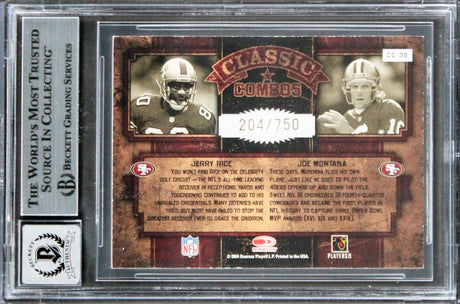 49ers Jerry Rice & Joe Montana Signed 2004 Donruss #C38 Card Auto 10 BAS Slabbed