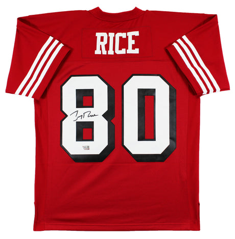 49ers Jerry Rice Signed Red Mitchell & Ness Jersey w/ Dropshadow Fanatics