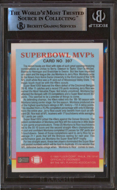 49ers Joe Montana & Jerry Rice Signed 1990 Fleer #397 SB MVPs Card BAS Slabbed