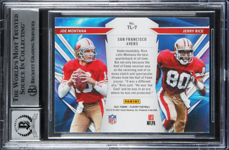 Very low stock (1 unit)$529Unit price /Unavailable49ers Joe Montana & Jerry Rice Signed 2021 Playoff T&L #7 Card Auto 10! BAS Slab