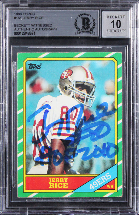 49ers Jerry Rice "HOF 2010" Signed 1986 Topps #161 RC Card Auto 10 BAS Slabbed 3