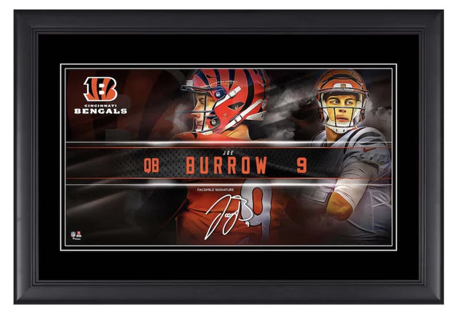 Joe Burrow Cincinnati Bengals Facsimile Signature Framed 10" x 18" Player Nameplate Collage Fanatics is backordered and will ship as soon as it is back in stock.