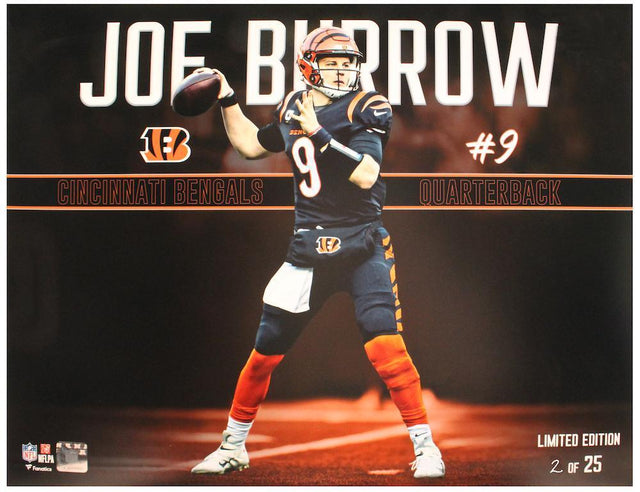 Capture the excitement of one of the NFL’s brightest young stars with this unsigned photograph of Joe Burrow, officially licensed by the National Football League. A must-have for any serious fan of the Cincinnati Bengals or collector of modern football icons, this photo highlights Joe Burrow in action—an athlete known for his leadership, precision, and rising legacy in professional football. Whether you're building your sports memorabilia wall or looking for the perfect gift for a Bengals enthusiast, this photograph brings authentic gridiron energy straight to your collection.