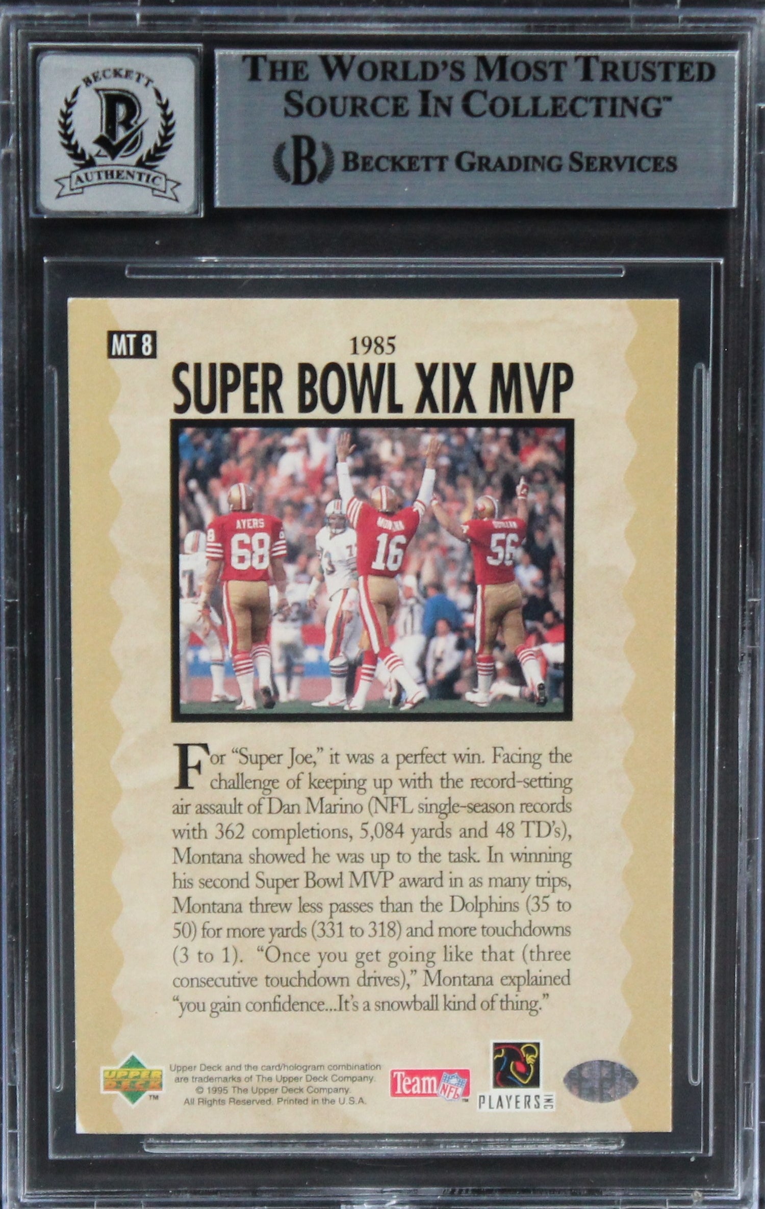 49ers Joe Montana Signed 1995 Upper Deck Trilogy #MT8 Card Auto 10! BAS Slabbed