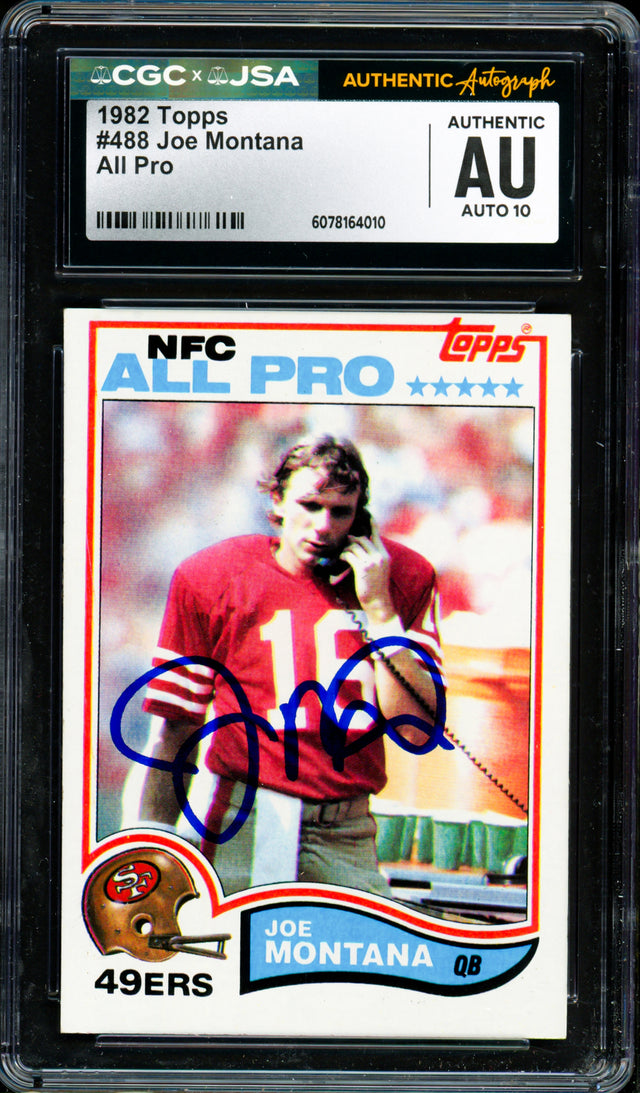 Joe Montana Autographed 1982 Topps Card #488 San Francisco 49ers Auto Grade Gem Mint 10 CGC x JSA Stock #254386