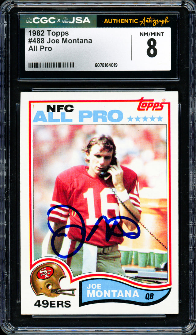 Joe Montana Autographed 1982 Topps Card #488 San Francisco 49ers CGC x JSA 8 CGC x JSA Stock #254385