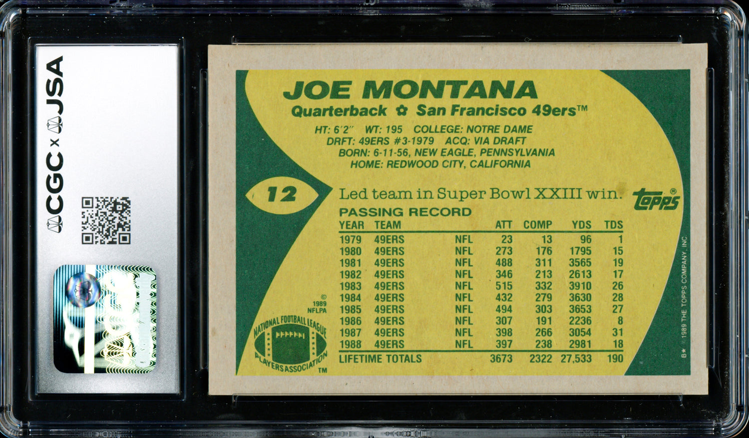 Joe Montana Autographed 1989 Topps Card #12 San Francisco 49ers Auto Grade Gem Mint 10 CGC x JSA Stock #254412