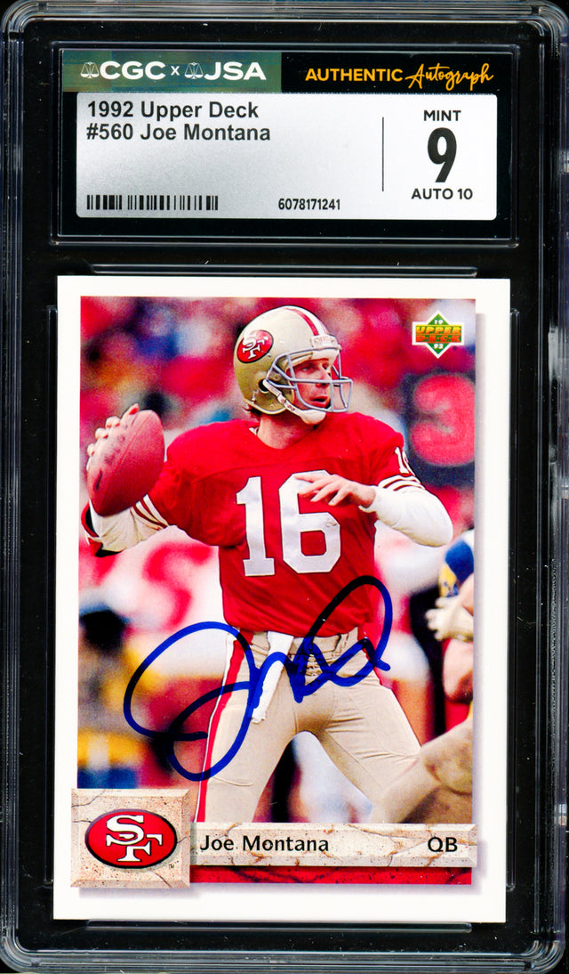 Joe Montana Autographed 1992 Upper Deck Card #560 San Francisco 49ers Card Grade 9 Auto Grade Gem Mint 10 CGC x JSA #6078171241