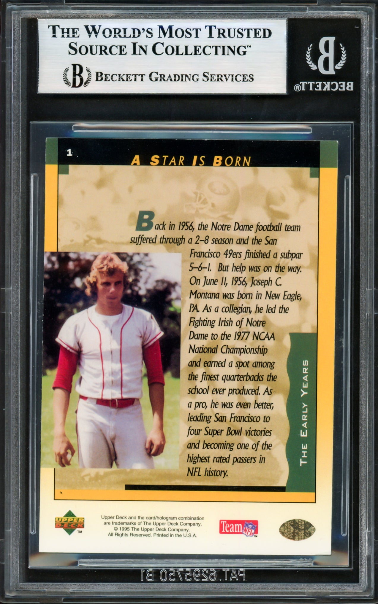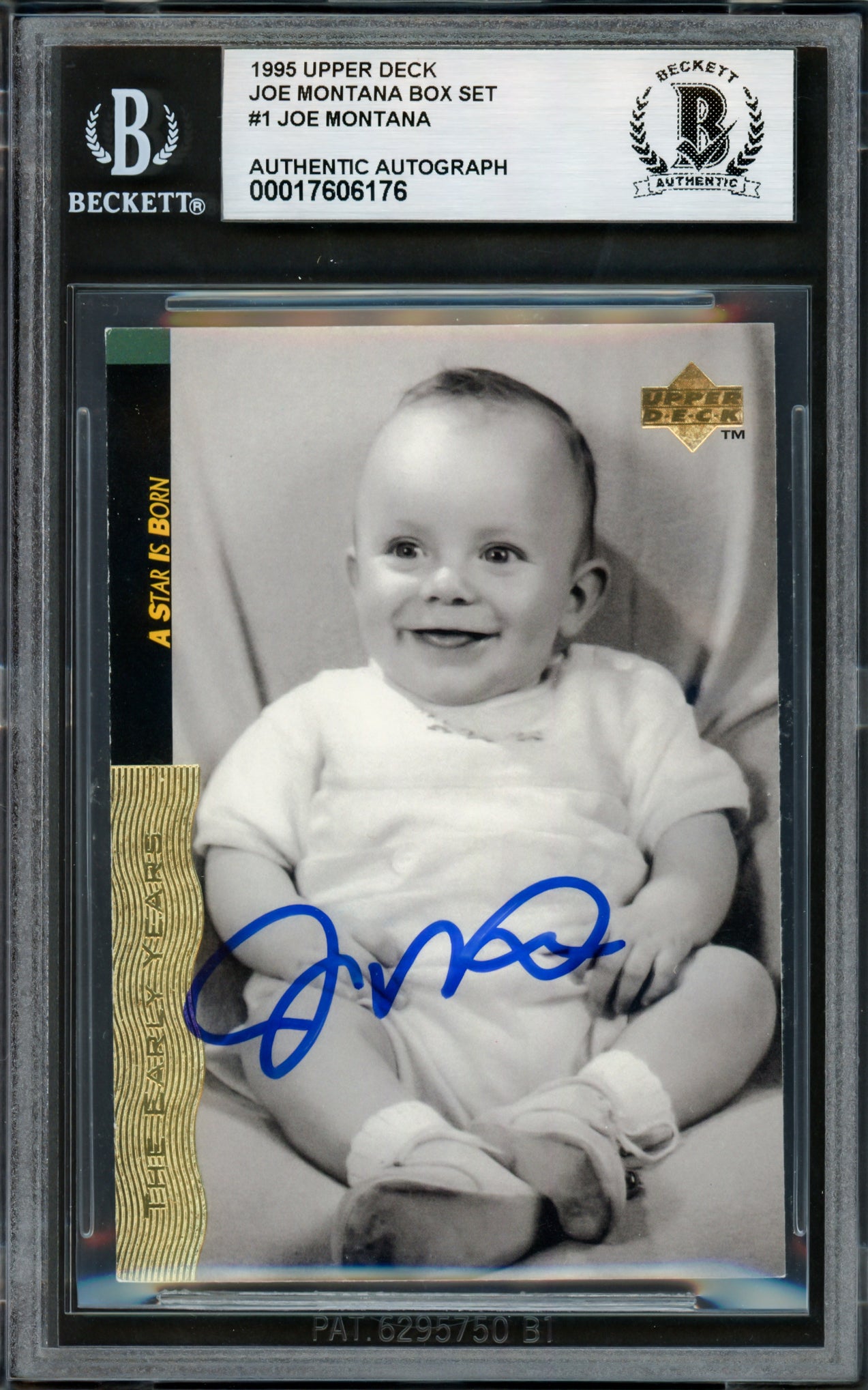 Joe Montana Autographed 1995 Upper Deck Card #1 San Francisco 49ers Beckett BAS #17606176