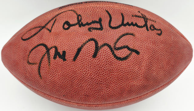 - Hand signed by Johnny Unitas & Joe Montana – NFL Hall of Fame Quarterbacks