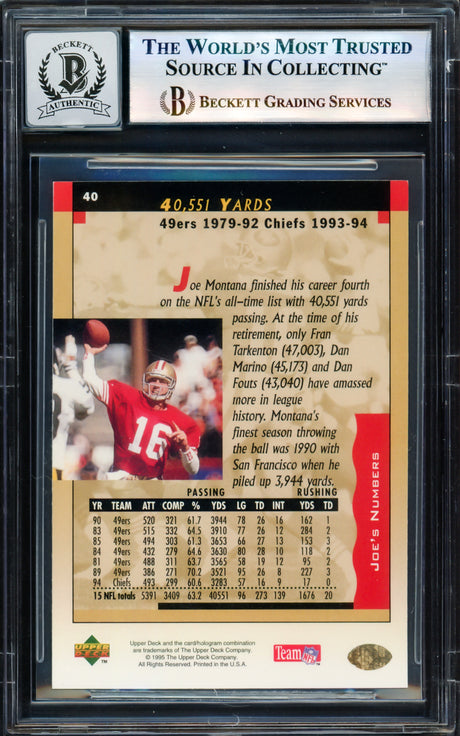 Joe Montana Autographed 1992 Upper Deck Card #560 San Francisco 49ers Beckett BAS #17606150