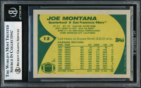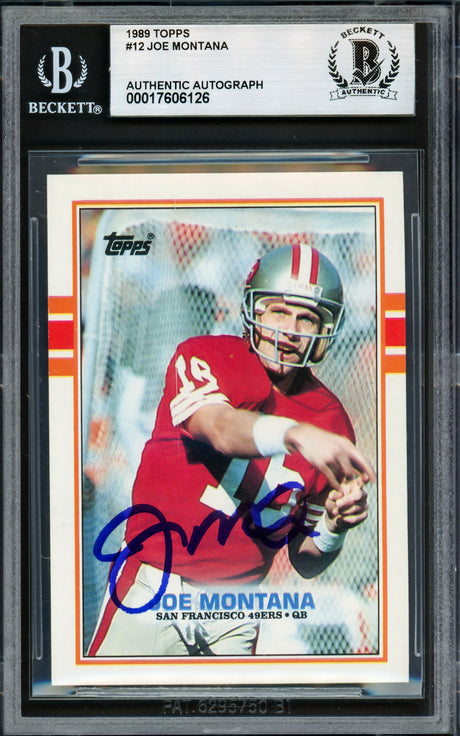 Joe Montana Autographed 1989 Topps Card #12 San Francisco 49ers Beckett BAS #17606126