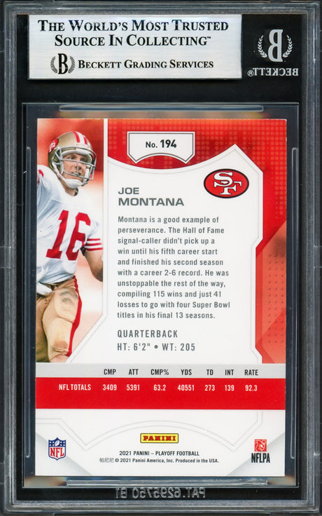 Joe Montana Autographed 2021 Panini Playoff Card #194 San Francisco 49ers Beckett BAS #17606292