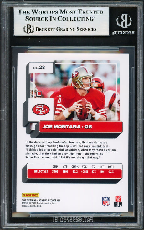 Joe Montana Autographed 2022 Donruss Card #23 San Francisco 49ers Beckett BAS #17606317