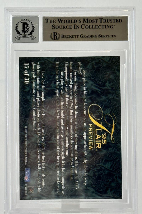 1995 Fleer Flair Preview #15 Joe Montana Auto KC Chiefs BGS Autograph 10