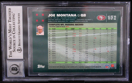 2007 Topps Turn Back the Clock #16 Joe Montana Auto SF 49ers BGS Autograph 10
