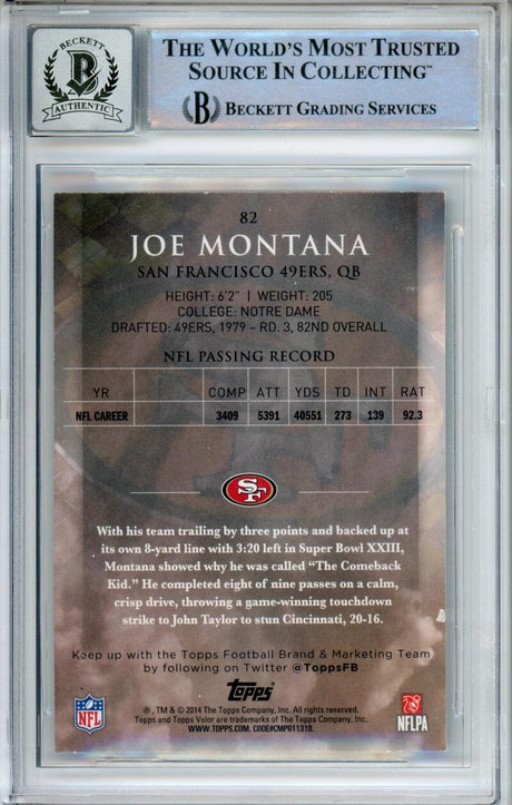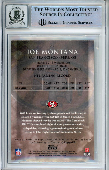 2014 Topps Valor #82 Joe Montana San Francisco 49ers BGS Autograph 10