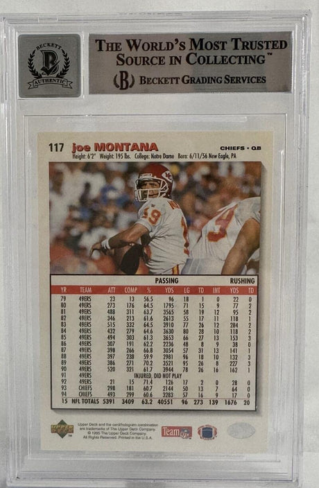 1995 Collector's Choice #117 Joe Montana Auto Kansas Chiefs BGS Autograph 10