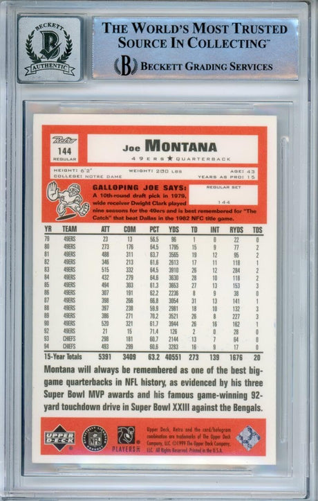 1999 Upper Deck Retro #144 Joe Montana San Francisco 49ers BGS Autograph 10