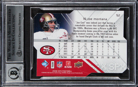 49ers Joe Montana Authentic Signed 2008 SPX #52 Card Auto 10! BAS Slabbed
