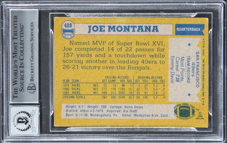 49ers Joe Montana Authentic Signed 1982 Topps #488 Card Auto 10! BAS Slabbed 4