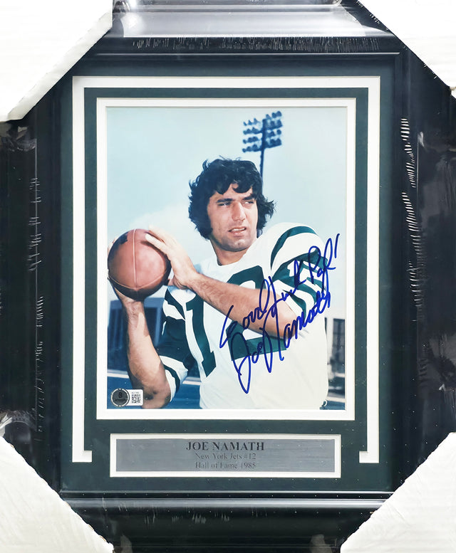 Joe Namath Autographed Framed 8x10 Photo New York Jets "Good Luck Pal!" Beckett BAS QR #AE31689