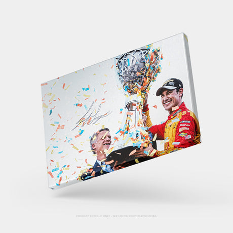 Joey Logano Autographed 2022 NASCAR Championship Trophy Canvas 20x30
