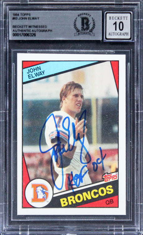 Broncos John Elway "HOF 04" Signed 1984 Topps #63 Rookie Card Auto 10! BAS Slab