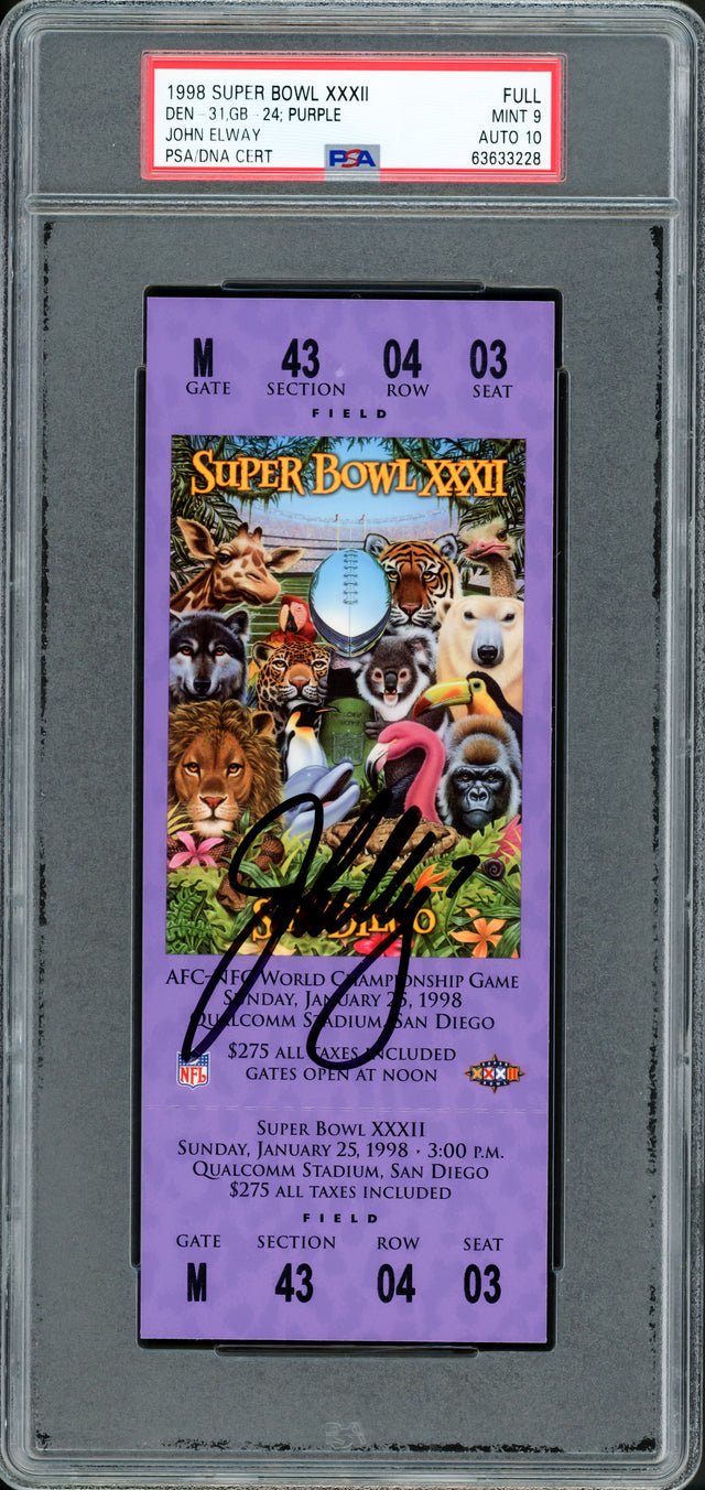 John Elway Autographed 1998 Super Bowl XXXII Ticket Denver Broncos PSA 9 Auto Grade Gem Mint 10 PSA/DNA #63633228