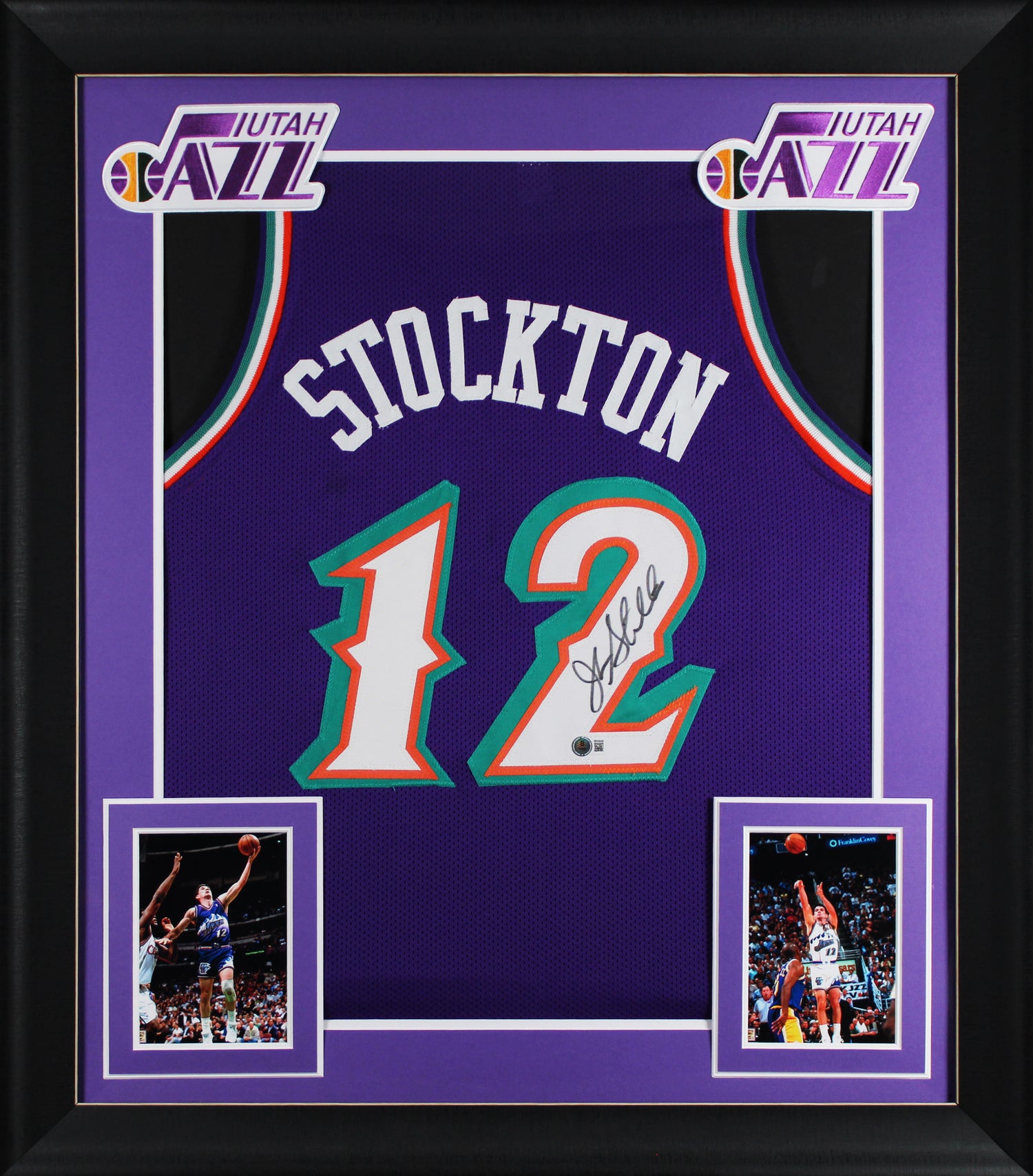 John Stockton Authentic Signed Purple Pro Style Framed Jersey BAS Witnessed