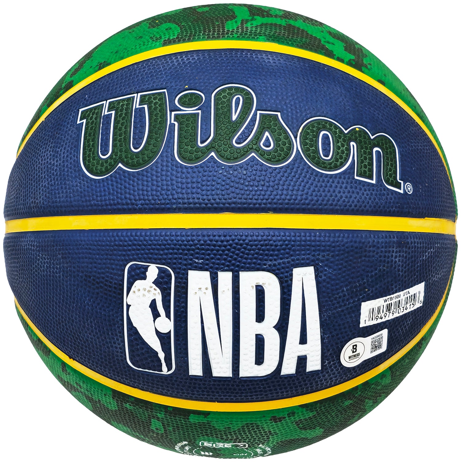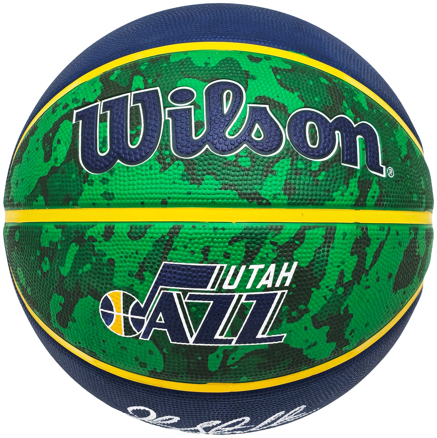 Own a piece of basketball history with this Blue & Green Tie-Dye Utah Jazz Logo Basketball, hand-signed by Hall of Famer John Stockton. As one of the greatest point guards in NBA history, Stockton's legacy is cemented through his record-breaking assists and steals, making this autographed basketball a must-have for collectors and Utah Jazz fans alike.
